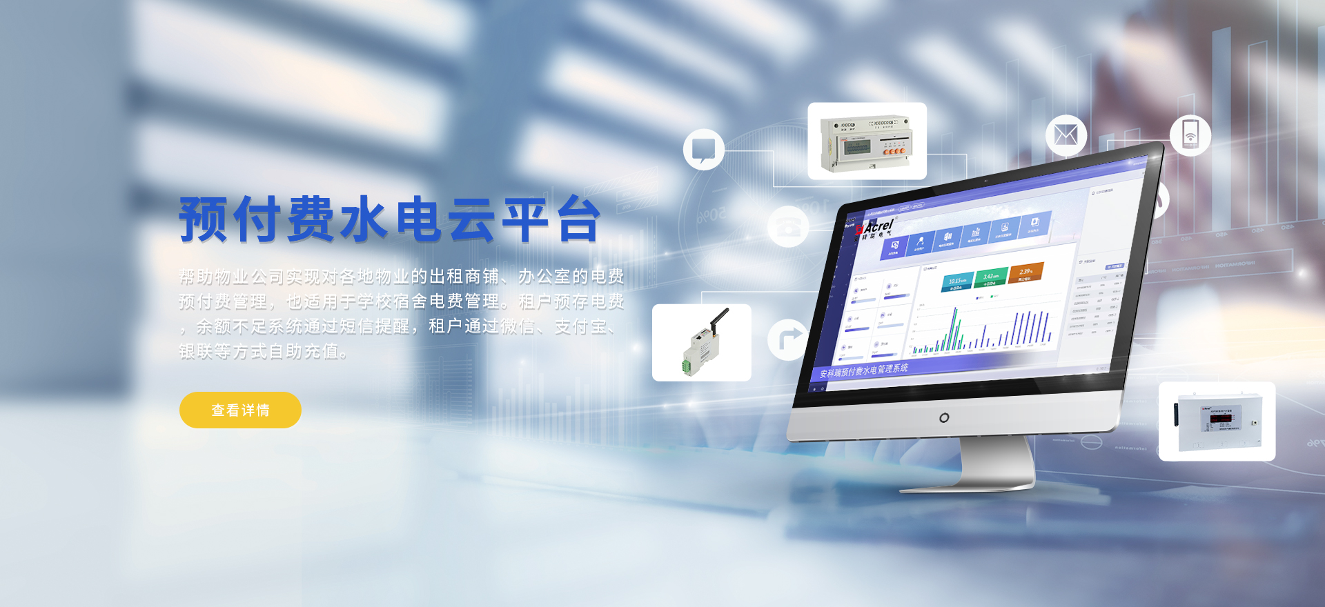 安科瑞提供的解決方案包括Acrel-EIoT能源物聯(lián)網(wǎng)云平臺(tái)、變電所運(yùn)維云平臺(tái)、安全用電管理云平臺(tái)、環(huán)保用電監(jiān)管云平臺(tái)、智慧消防云平臺(tái)、能源管理云平臺(tái)、工業(yè)企業(yè)能源管控平臺(tái)、遠(yuǎn)程預(yù)付費(fèi)云平臺(tái)、餐飲油煙監(jiān)管云平臺(tái)、電動(dòng)汽車(chē)/電瓶車(chē)充電樁收費(fèi)管理云平臺(tái)、電力監(jiān)控/無(wú)線(xiàn)測(cè)溫系統(tǒng)、電能質(zhì)量治理系統(tǒng)、電氣火災(zāi)監(jiān)控系統(tǒng)、消防設(shè)備電源監(jiān)控系統(tǒng)、防火門(mén)監(jiān)控系統(tǒng)、應(yīng)急照明和疏散指示系統(tǒng)、智能照明控制系統(tǒng)、醫(yī)用隔離電源絕緣監(jiān)測(cè)系統(tǒng)等,幫助用戶(hù)實(shí)現(xiàn)能源智能化、可視化、精細(xì)化管理,提高用能效率和用能安全,為企業(yè)節(jié)能降耗和實(shí)現(xiàn)能源數(shù)字化建設(shè)提供數(shù)據(jù)服務(wù)。